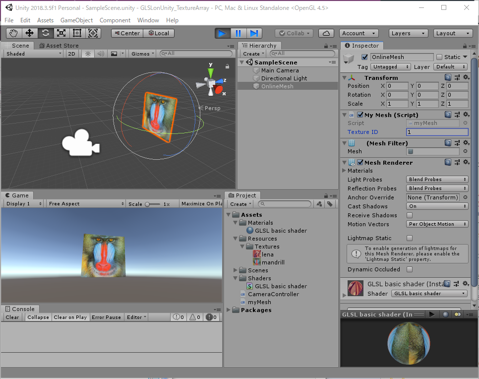 前回(Unity + GLSLで独自メッシュにテクスチャを張る)は,そのタイトルの通りGLSLでテクスチャマッピングを行いました.今回は,GLSLで2D Array Textureを使ってみたいと思います.だんだんニッチな内容になってきたように思いますが,将来的に必要になると思うので,自分の備忘録のために書き残します.